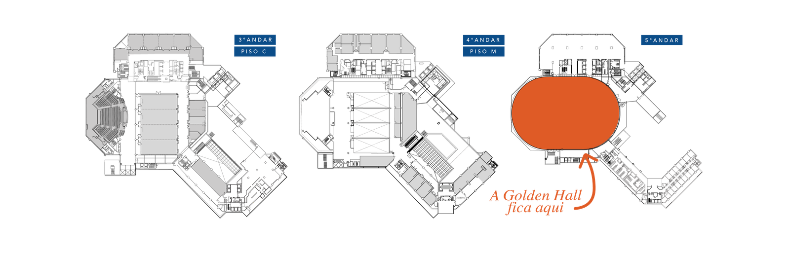 Com 3.150 m² e pé-direito livre de 15 metros, o Golden Hall é o espaço ideal para eventos de grande porte, com capacidade para até 2.500 pessoas. Seu foyer integrado oferece apoio para credenciamento e área de estandes, garantindo uma experiência completa. Aqui, o seu sonho de evento ganha vida com sofisticação e uma estrutura impecável.